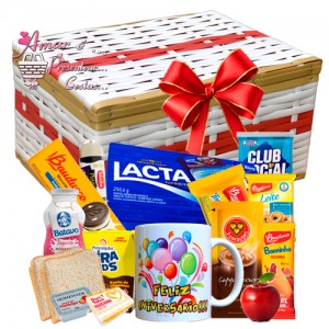 Brinde: 1 Caneca de porcelana Mensagem Feliz Aniversário