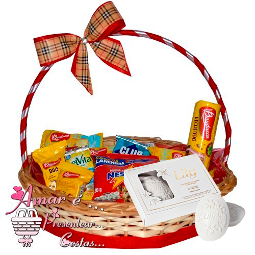 Biscoitos: - 1 Biscoitos Maria - 1 Amanteigado de leite - 1 Amanteigados banana c/ canela - 1 Amanteigados chocolate - 1 Bolacha recheada ou bolacha doce - 1 Bolacha salgada - 1 Mini waffer - 1 Club Social
